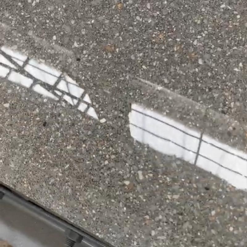 Expolitio liquidum cum marmore reflectit, micropora implens et stratum crystallinum densum formans.